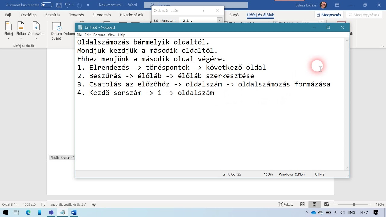 Oldalszamozas Barmelyik Oldaltol Youtube